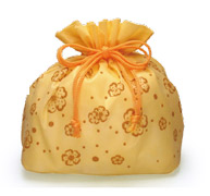 結んだ紐が可愛らしい不織布の巾着袋、信玄袋です。